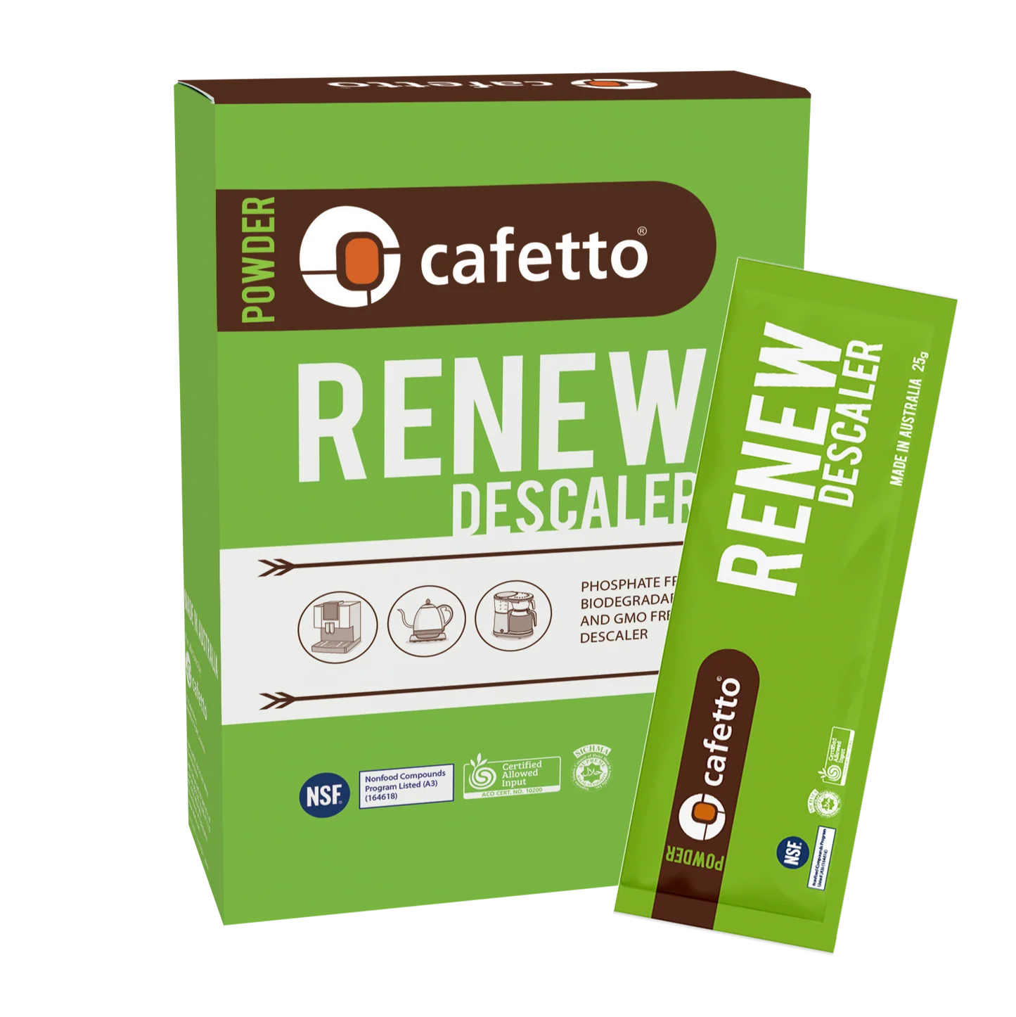 The ingredients and formulation of Renew are safe, leave no harmful residues and do not cause corrosion within the coffee machine. Safe to use on aluminium, brass and stainless steel. Designed for espresso machines, boilers and coffee brewers.